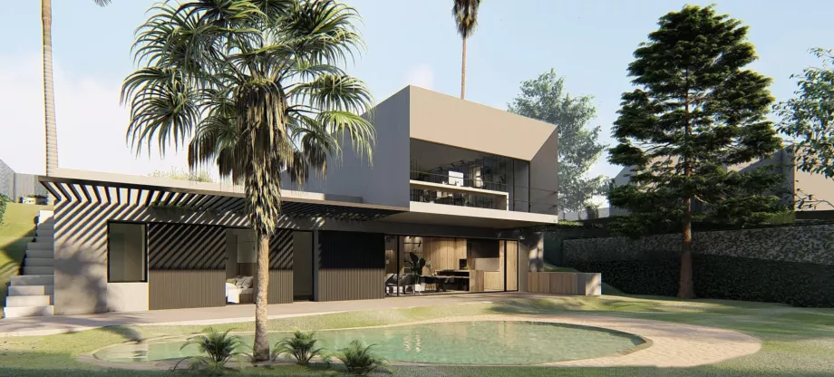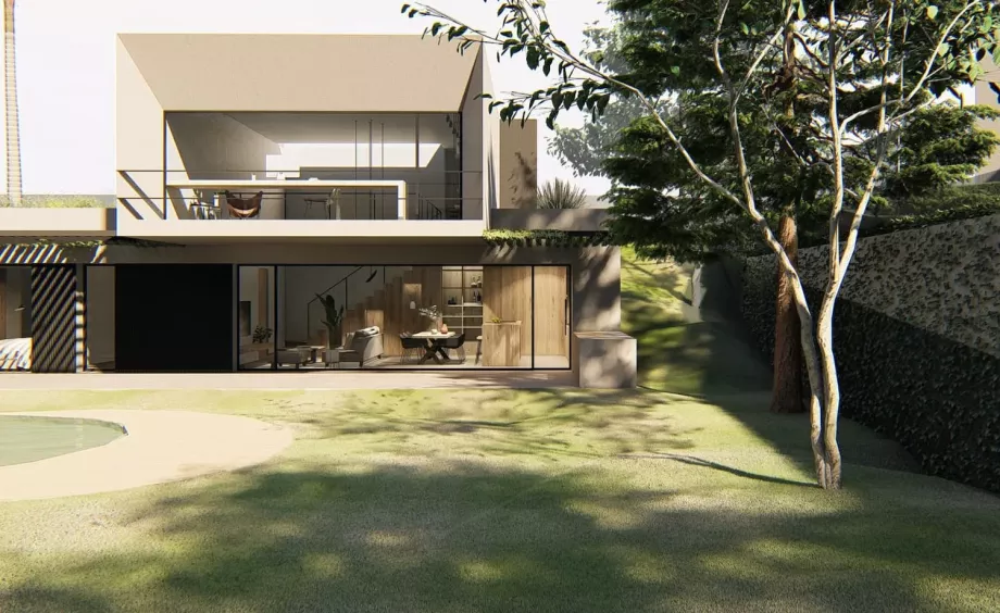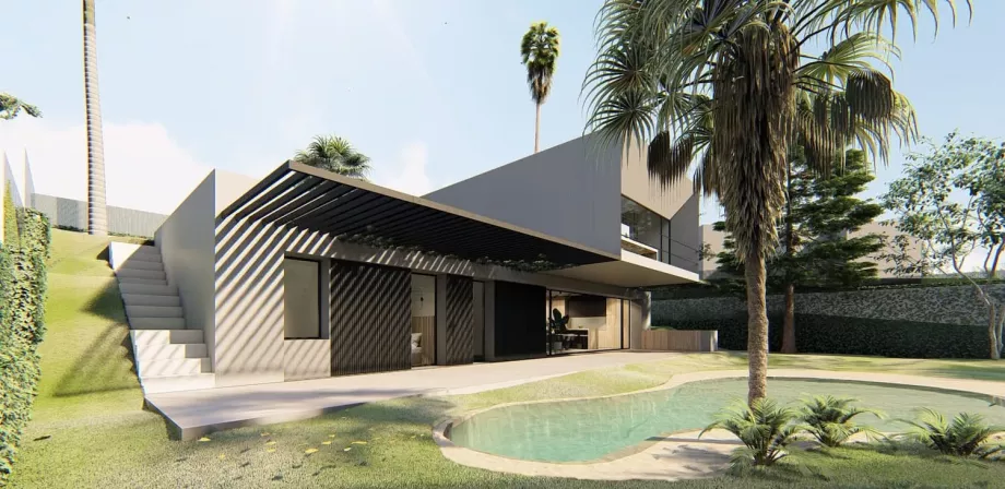 El proyecto partió de varios condicionantes que marcarían el diseño de esta vivienda: una parcela con una elevada pendiente, el deseo de los clientes de la vinculación del espacio exterior con el interior, y la certificación Passivhaus de la vivienda.