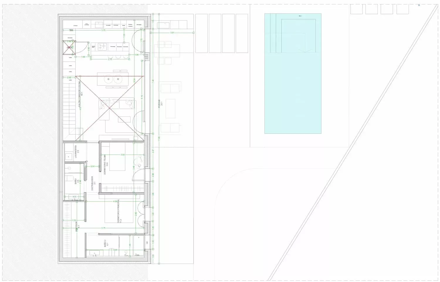 La parcela, situada en esquina, presentaba los condicionantes ideales en cuanto a orientación, edificaciones colindantes, ventilación, soleamiento, etc.