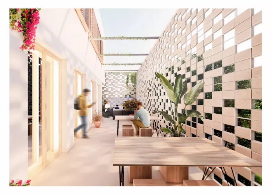 La intervención iba acompañada de un cambio de imagen exterior del edificio, más innovadora y que supusiera una mejora del entorno en el que se implantaba.