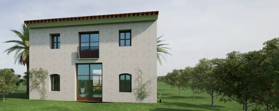 Se trata de una construcción aislada, situada en suelo no urbanizable, vinculada a un uso agrícola, la cual es concebida para convertirse en una residencia completamente autosuficiente, apostando por un enfoque sostenible.