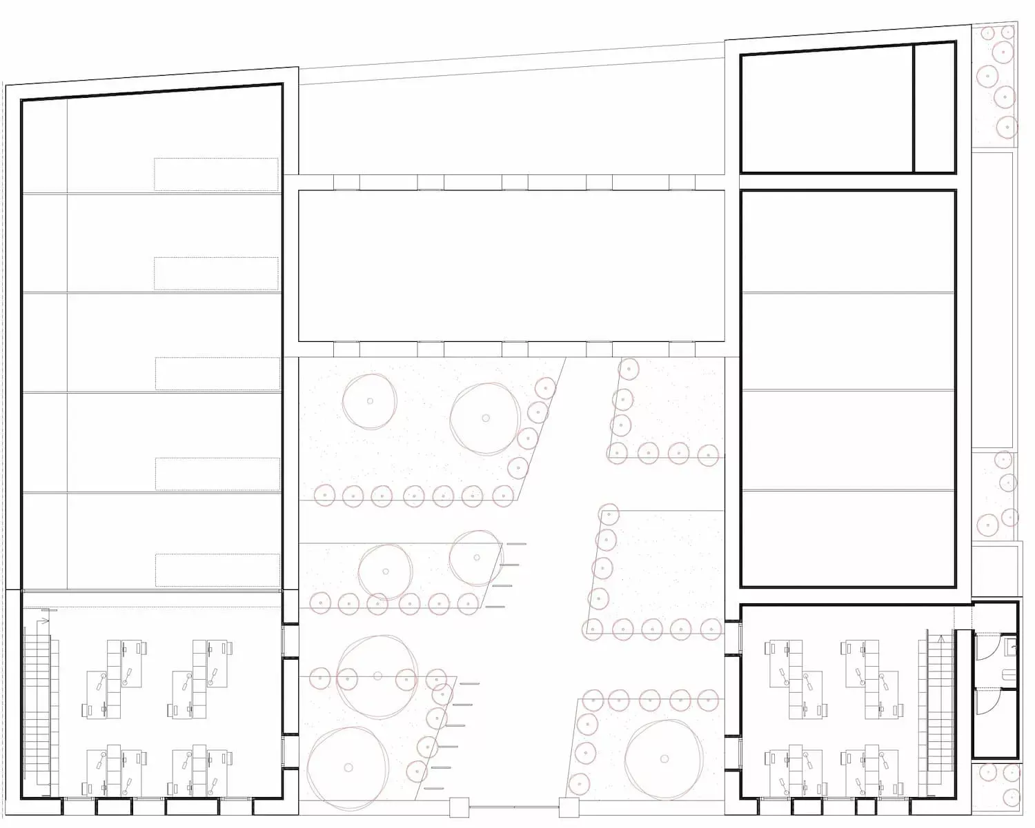 El desafío consistía en transformar una estructura industrial obsoleta en un espacio contemporáneo y funcional, capaz de albergar actividades diversas que fortalecieran el tejido económico local, sin comprometer su valor arquitectónico original.
