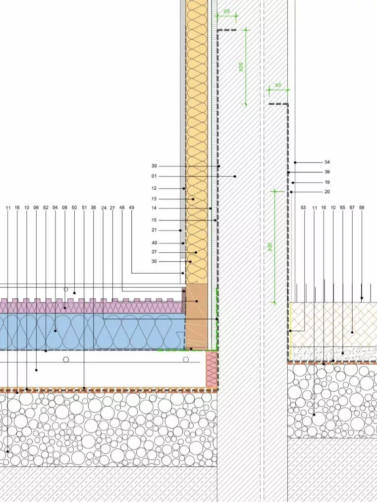 La solución adoptada combina materiales aislantes de alta eficiencia con membranas de control higrotérmico, asegurando tanto el comportamiento térmico como la durabilidad de la intervención.