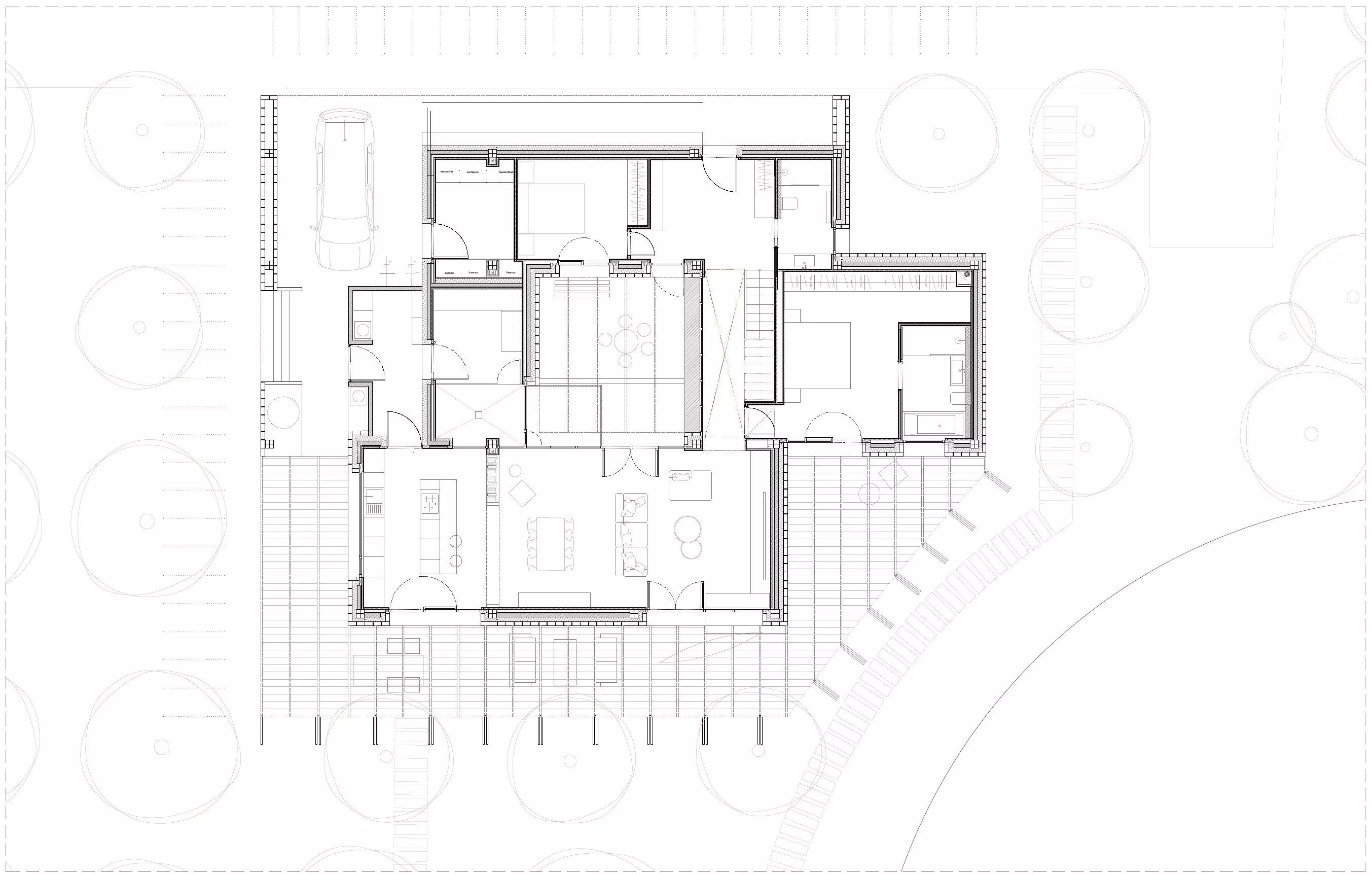 El proyecto de esta vivienda vino condicionados por varias cuestiones que condicionarían el diseño y el desarrollo del programa: la parcela, la materialidad, la eficiencia energética y loros.
