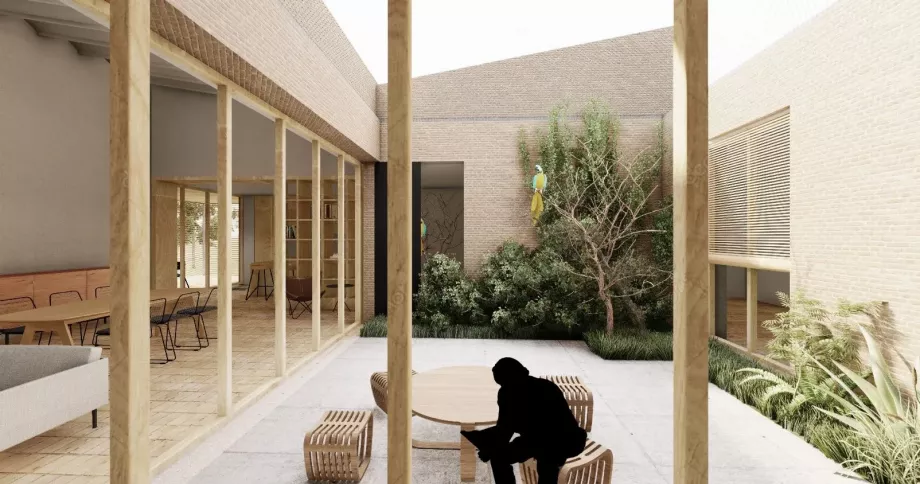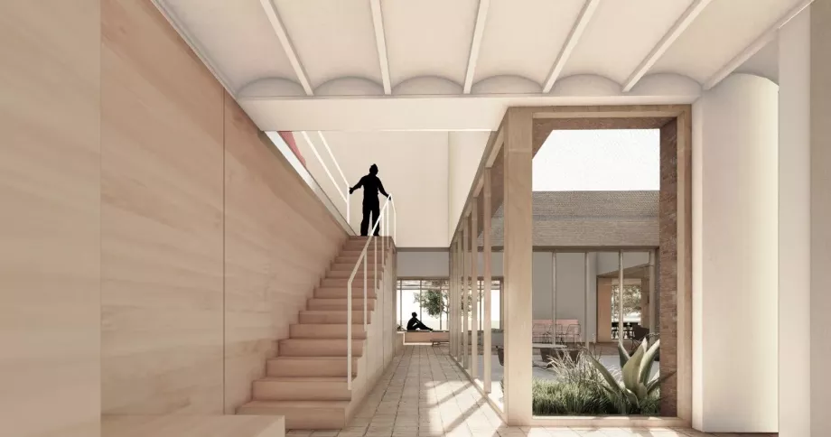 La materialidad, de carácter industrial, debían integrar el ladrillo, el hormigón, el acero y la madera en el diseño. Fue deseo del promotor que la fachada se resolviera con ladrillo caravista, y que la madera y el hormigón formaran parte de los espacios interiores.
