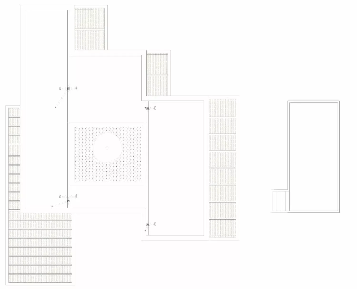 El proyecto debía dialogar con la arquitectura tradicional de la zona. La solución adoptó una estrategia de volúmenes fragmentados a un agua que, en conjunto, conforman la volumetría total de la vivienda. Esta disposición genera un patio central que articula los diferentes volúmenes, creando espacios exteriores protegidos y funcionando como núcleo organizador de la vida doméstica.