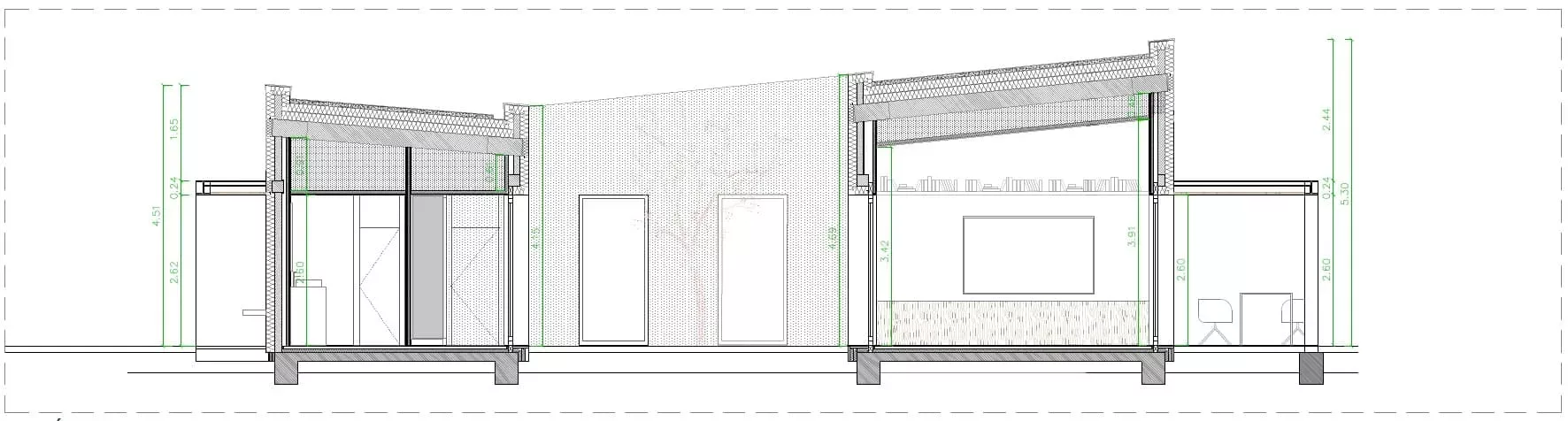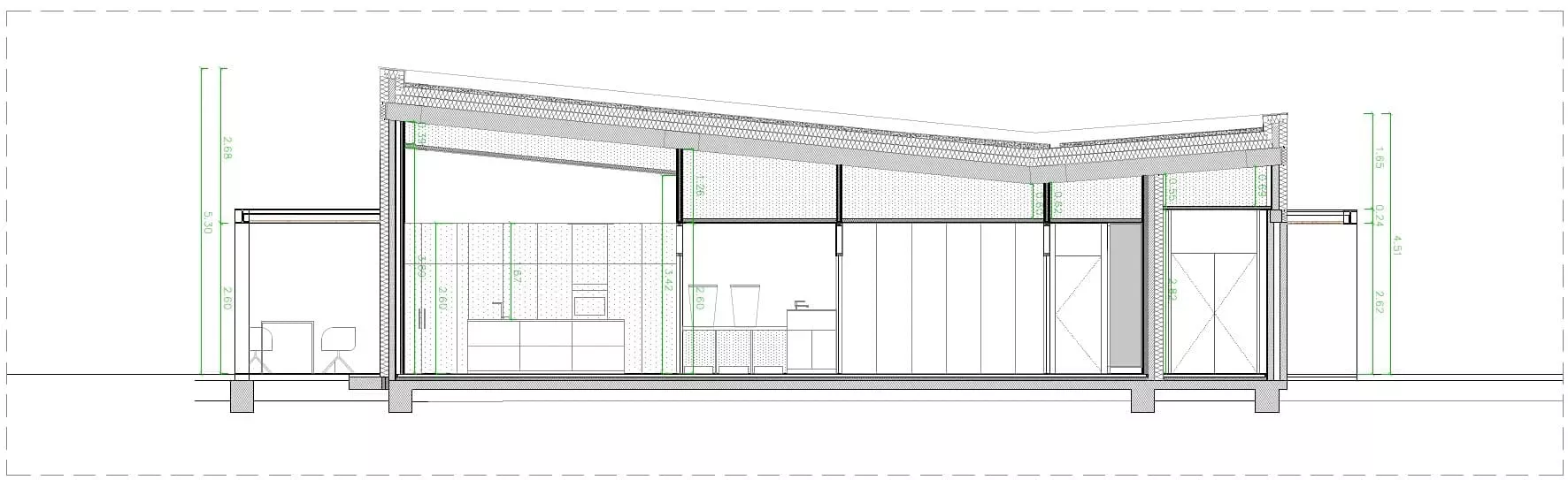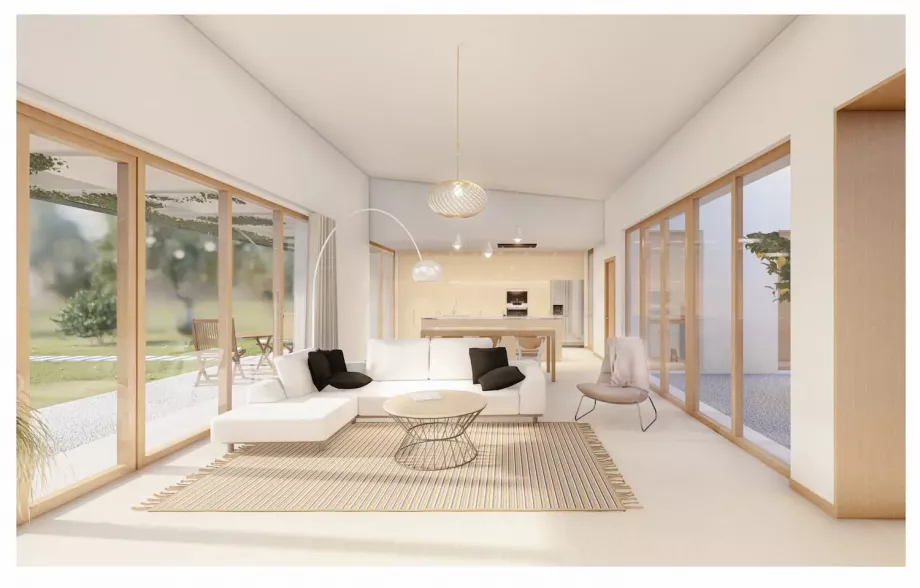 Una casa sostenible, gracias a las estrategias bioclimáticas introducidas y que ayudan en conjunto a minimizar la huella de Co2 de la vivienda.